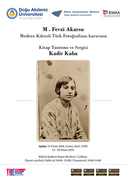 Doğu Akdeniz Üniversitesi Kıbrıs Araştırmaları Merkezi (DAÜ-KAM) ve Akdeniz Avrupa Sanat Derneği (EMAA) ortak bir etkinliğe daha imza atmaya hazırlanıyor. Kadir Kaba’nın Modern Kıbrıs Türk fotoğrafının kurucusu M. Fevzi Akarsu’nun hayatını ve eserlerini kaleme aldığı kitabının tanıtımı ve kitapla ilişkili olarak orijinal fotoğrafların da yer aldığı sergi etkinliği 13 Nisan 2018 Cuma günü, saat 19:00’da, EMAA Başkent Sanat Merkezi’nde sanatseverlerle buluşuyor. Etkinliğin açılışı ise KKTC Cumhurbaşkanı Mustafa Akıncı tarafından gerçekleştirilecek.