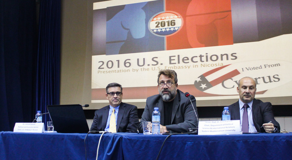 Doğu Akdeniz Üniversitesi (DAÜ) Kıbrıs Politikaları Merkezi dönemin son konferansını geçtiğimiz günlerde Siyaset Bilimi ve Uluslararası İlişkiler Bölümü’nde gerçekleştirdi. ‘Yasemin Devrimi ve Arap Baharı Ötesinde Otokratik Seçkinler’ adını taşıyan seminerin açılış konuşmasını Akademik İşlerden Sorumlu Rektör Yardımcısı Prof. Dr. Ahmet Sözen yaptı. Prof. Dr. Ahmet Sözen seminerin davetli konuşmacısı Dr. M. Moncef Khaddar’ı dinleyicilere tanıttı.