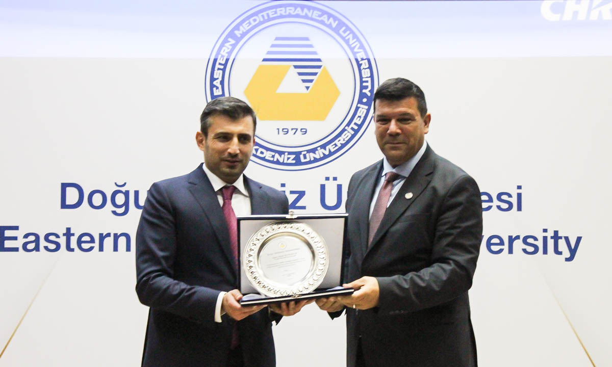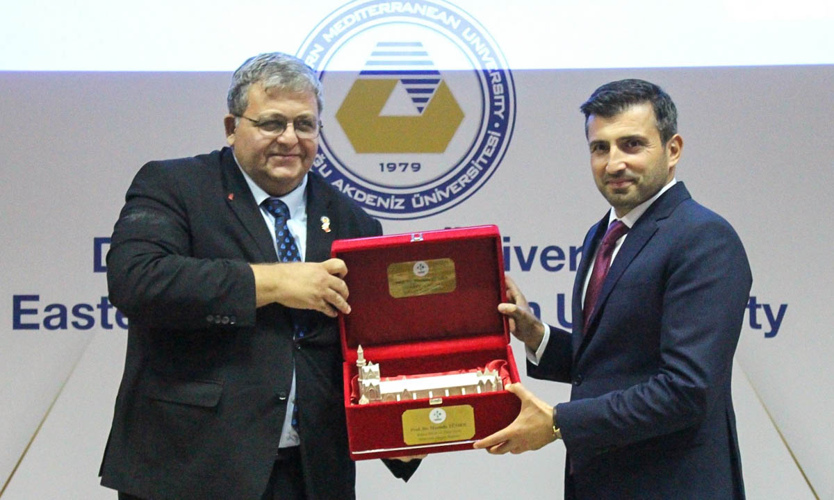 Sunumunun sonunda DAÜ Tanıtım ve Kurumsal İletişimden Sorumlu Rektör Yardımcısı ve Kıbrıs Bilim ve Zekâ Vakfı Mütevelli Heyeti Başkanı Prof. Dr. Mustafa Tümer tarafından Selçuk Bayraktar’a hediye takdim edildi. DAÜ Rektörü Prof. Dr. Hasan Kılıç katılımlarından dolayı Bayraktar’a gümüş tabak takdiminde bulundu. Bayraktar ise Prof. Dr. Kılıç’a Akıncı uçak maketi takdim etti.