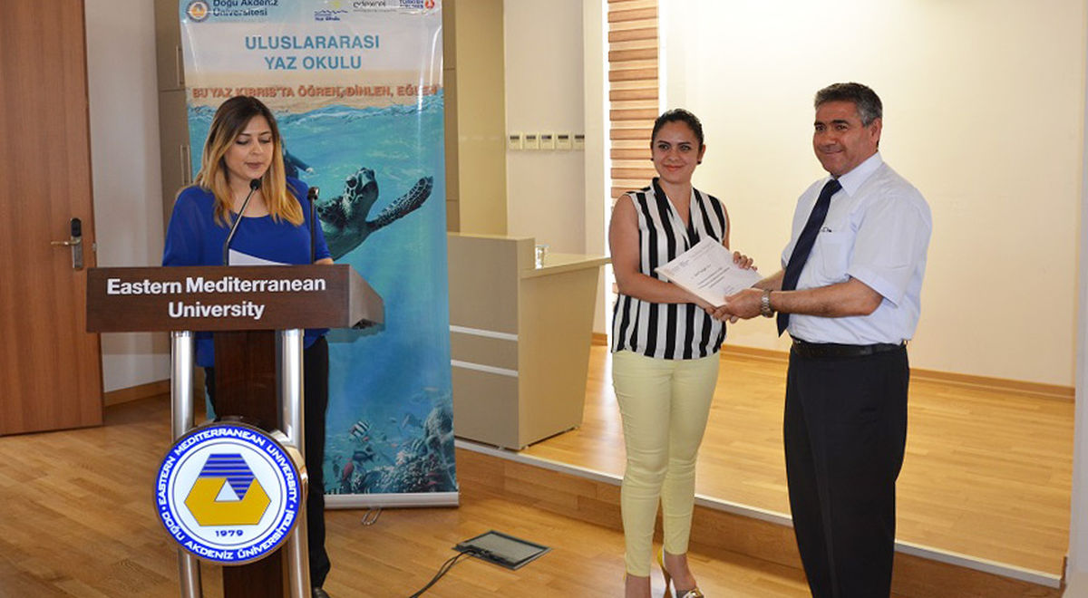 Ulaş Gökçe’nin bilgilendirme sunumunun ardından DAÜ Uluslararası Yaz Okulu’na katkıda bulunan personele Prof. Dr. Osam ve Prof. Dr. Amca tarafından teşekkür belgesi takdim edildi. Uluslararası Yaz Okulu Tanıtım ve Teşekkür Toplantısı verilen kokteylin ardından sona erdi.