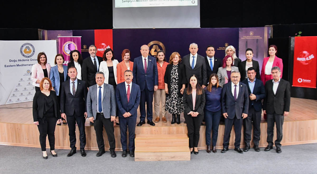 KKTC Cumhurbaşkanı Ersin Tatar DAÜ’nün bilimin, ilimin ve teknolojinin merkezi olduğunu belirterek, DAÜ’nün kuruluşundan itibaren bütün dünyada ülkemizi temsil ettiğini vurguladı. Şampiyon Melekleri anarak sözlerine devam eden Tatar, her zaman yüreklerde yaşayacaklarını aktardı. KKTC’de her zaman kadınlara değer verildiğini belirten Tatar, cinsiyet eşitliğine her yerde önem verdiklerini ve vermeye de devam edeceklerini vurguladı. Kadınların yapay zekâ ve yazılım çalışmalarındaki mesleklere yönelmelerinin önemine değinen Tatar, pandemi ile birlikte dijitalleşen dünyada teknoloji, yazılım ve yapay zekânın ne kadar önemli olduğunun ortaya çıktığını vurguladı. Ülkelerin bütün gelişmelere ayak uydurabilmesi için kadınların da en az erkekler kadar bu mücadelede yer alması gerektiğini aktaran Cumhurbaşkanı Tatar, KKTC’de kadınların yapay zekâ ve teknoloji sektöründe yer almalarının son derece önemli olduğuna değindi. DAÜ’nün bu ülkenin en önemli lokomotif üniversitesi olarak gelecekte ülke için çok önemli bir pozisyonda olacağını düşündüğünü aktaran Cumhurbaşkanı Ersin Tatar, DAÜ’nün bilim ve teknoloji merkezi olduğunu aktardı.