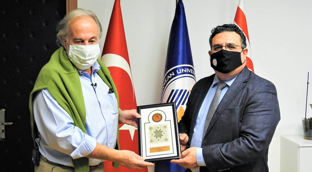 Ünlü gurmeler Mehmet Yaşin ve Teoman Hünal, etkinliğin ardından DAÜ Rektörü Prof. Dr. Aykut Hocanın’a ziyaret gerçekleştirdi. Ziyarette DAÜ Turizm Fakültesi Dekanı Prof. Dr. Hasan Kılıç da hazır bulundu. Prof. Dr. Hocanın, ünlü gurmeler Mehmet Yaşin, Teoman Hünal ve “Görevimiz Yemek” ekibine DAÜ’ye gerçekleştirmiş oldukları ziyaretten dolayı teşekkür etti. Ziyaret sonunda Prof. Dr. Hocanın tarafından Mehmet Yaşin ve Teoman Hünal’a Kıbrıs’a özgü Lefkara işi pano takdiminde bulunuldu.