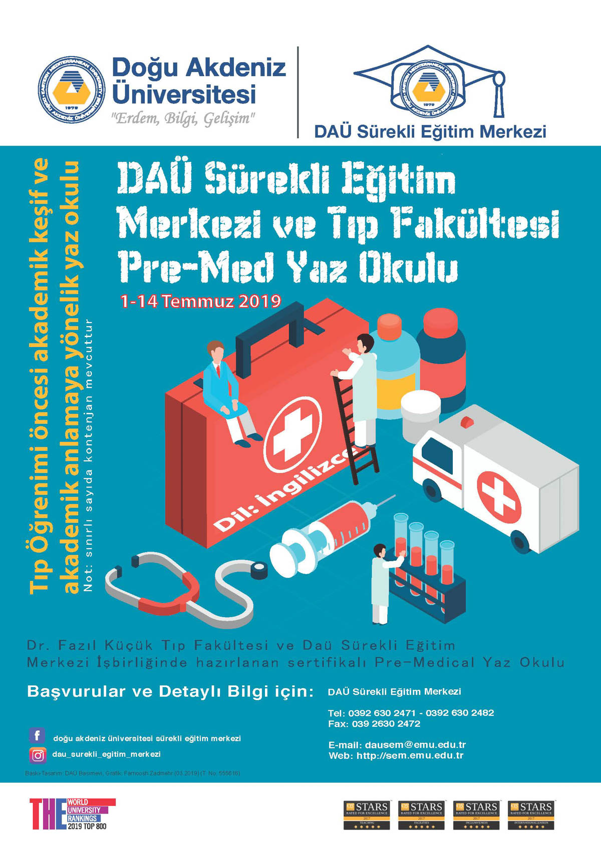 Ayrıca, şu an kayıt alınmakta olan ve ilk kez düzenlenecek “Ön-Tıp Yaz Okulu” da DAÜ-SEM’in eğitim programları arasında bulunuyor. Tıp okumak isteyen liseli öğrencilere yönelik olarak gerçekleştirilen bu yaz okulu da DAÜ Dr. Fazıl Küçük Tıp Fakültesi ile iş birliği içerisinde gerçekleştirilecek. 1-14 Temmuz 2019 tarihlerinde hafta içi yapılacak olan ve tıp öğrenimi öncesi akademik keşif ve akademik anlamaya yönelik olan bu yaz okulunda eğitim dili İngilizce olacak.