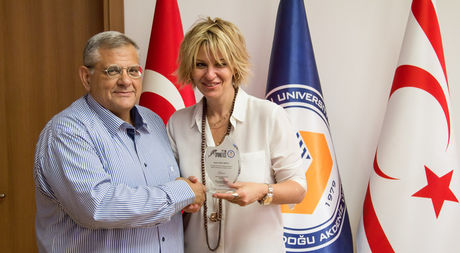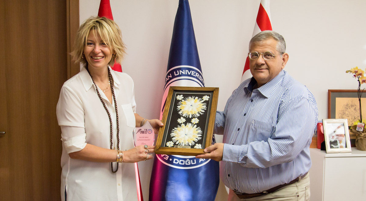 Söyleşiye izleyici olarak katılanların hayranlığını kazanan Ayşe Arman, söyleşisinin ardından DAÜ Rektör Vekili Prof. Dr. Necdet Osam’ı makamında ziyaret etti. Ziyarette DAÜ hakkında geniş bilgiler alan Arman’a Prof. Dr. Osam tarafından teşekkür plaketi ve Kıbrıs’a özgü ipek kozası pano takdim edildi.