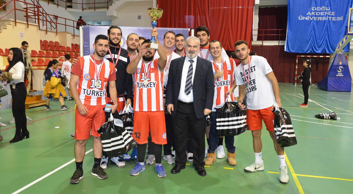 Turnuva finaline DAÜ Rektörü Prof. Dr. Necdet Osam, Öğrenci İşleri’nden Sorumlu Rektör Yardımcısı Prof. Dr. M. Yaşar Özden, Uluslararası İşler ve Tanıtım’dan Sorumlu Rektör Yardımcısı Prof. Dr. Cem Tanova, Öğrenci İşleri Eşgüdüm Görevlisi Doç. Dr. Derviş Subaşı, Rektör Koordinatörü Yrd. Doç. Dr. Arif Akkeleş, Halkla İlişkiler ve Basın Müdür Vekili Murat Aktuğralı da katıldı. Gerçekleştirilen ödül töreninde ödüller, Prof. Dr. Özden, Yrd. Doç. Dr. Akkeleş, Doç. Dr. Subaşı, Spor İşleri Müdürü Cemal Konnolu ile Spor İşleri Müdürlüğü Personeli tarafından verildi.