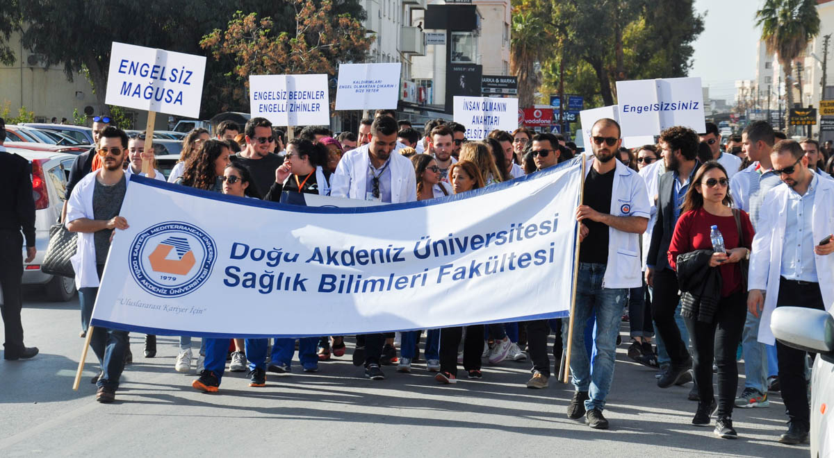 Doğu Akdeniz Üniversitesi (DAÜ) Sağlık Bilimleri Fakültesi öğrencileri, 8 Nisan Ulusal Fizyoterapistler Günü sebebiyle farkındalık yürüyüşü gerçekleştirdi. Fizyoterapi ile ilgili halkı bilgilendirmeyi amaçlayan yürüyüş, DAÜ Sağlık, Spor ve Sanat Kulübü ile Sağlık Bilimleri Fakültesi Fizyoterapi ve Rehabilitasyon Kulübü işbirliğinde gerçekleştirildi. Çeşitli pankart ve dövizler eşliğinde yürüyen DAÜ Sağlık Bilimleri Fakültesi Fizyoterapi öğrencileri ve akademisyenleri, yürüyüş esnasında “Mağusa uyuma, harekete geç”, “Egzersiz deyince fizyoterapist” ve “Engelsiz Mağusa” şeklindeki sloganlarıyla Gazimağusa halkının meraklı bakışları arasında sağlıkla ilgili anlamlı mesajlarını verdi.