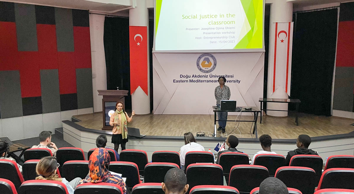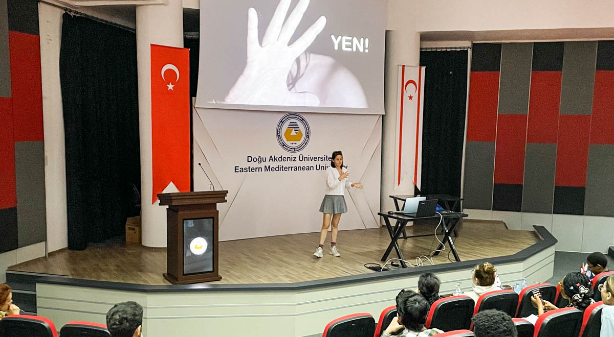Doğu Akdeniz Üniversitesi (DAÜ) Sosyal ve Kültürel Aktiviteler Müdürlüğü’ne bağlı DAÜ Girişimcilik Kulübü, “Sahnenin Yıldızı Olmaya Hazır Mısınız?” sloganıyla, Grup Önünde Etkili Konuşma konulu seminer düzenledi. DAÜ Merkezi Dersliklerde gerçekleşen eminerde grup önünde etkili konuşmanın incelikleri anlatıldı.