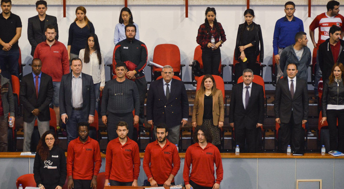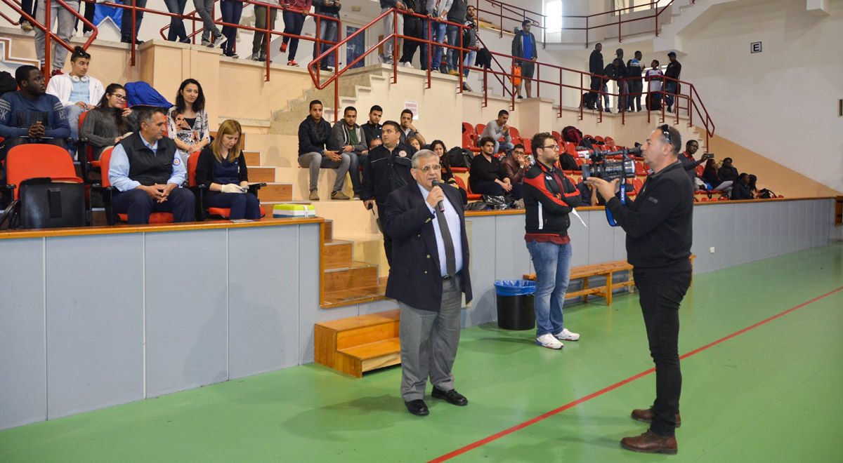 “DAÜ Uluslararası Futsal Cup of Nation” turnuvasının açılışı 16 Mart 2016 Çarşamba günü, saat 17:00’de, Lala Mustafa Paşa Spor Sarayı’nda gerçekleştirildi. Tüm ülke takımları açılışta müzik eşliğinde formalarıyla sahadaki yerlerini alırken, öğrencilerin coşku ve heyecanı gözlerinden okunuyordu. Tören geçtiğimiz günlerde Ankara’daki terör saldırısında yaşamını kaybedenler anısına bir dakikalık saygı duruşu ve İstiklal Marşı ile başladı. Açılış Töreni’ne DAÜ Rektör Vekili Prof. Dr. Necdet Osam, Rektör Yardımcıları Prof. Dr. Hasan Amca, Prof. Dr. Hıfsiye Pulhan, Rektörlük Koordinatörü Doç. Dr. Derviş Subaşı, Spor İşleri Müdürü Cemal Konnolu ve Halkla İlişkiler ve Basın Müdür Vekili Murat Aktuğralı da katılarak öğrencilerin heyecanına ortak oldu. DAÜ Rektör Vekili Prof. Dr. Necdet Osam açılışta yaptığı konuşmada DAÜ’nün uluslararası bir üniversite olduğunu vurgulayarak, sporun insanlar arasındaki iletişimi ve takım ruhunu güçlendirdiğini belirtti ve tüm takımlara başarılar diledi. Farklı kültürlerin bir araya geleceği bu önemli organizasyona sadece üniversite öğrencileri ile personeli değil, tüm bölge halkı da davet ediliyor.
