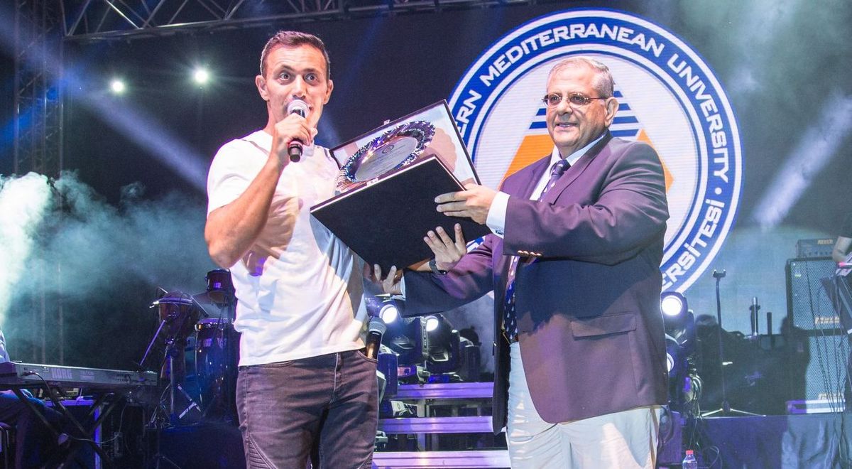 DAÜ Rektörü Prof. Dr. Necdet Osam, muhteşem şarkılarıyla DAÜ’lü öğrencileri ve Gazimağusa Halkı’nı eğlendiren Mustafa Sandal’a sahnede plaket takdiminde bulunarak teşekkür etti. DAÜ’lü yeni öğrencilere seslenen Prof. Dr. Osam, “Öncelikle Mustafa Sandal’a bu muhteşem konser için çok teşekkür ediyoruz. Yeni öğrencilerimiz; Kuzey Kıbrıs Türk Cumhuriyeti’ne ve DAÜ’ye hoş geldiniz. Bizi tercih ettiğiniz için teşekkür ederiz. Burada geçireceğiniz dört yılda çok çalışın ve derslerinizin yanı sıra, sizler için hazırlanan sosyal aktivitelere mutlaka katılmayı ihmal etmeyin. Güzel bir eğitim yılı geçirmenizi dilerim.” dedi. Mustafa Sandal da DAÜ Rektörü Prof. Dr. Necdet Osam’a teşekkür ederek “Ben de bundan sonra kabul ederseniz fahri bir Doğu Akdeniz Üniversitesi öğrencisiyim” şeklinde konuştu. Sandal, öğrencilere başarılı bir akademik yıl geçirmelerini temenni ederek “Reset”, “Aya Benzer Yüreğim”, “Demo”, “Onun Arabası Var”, “İsyankar” gibi en sevilen şarkılarını konseri izlemeye gelen coşkulu kalabalık için seslendirdi.