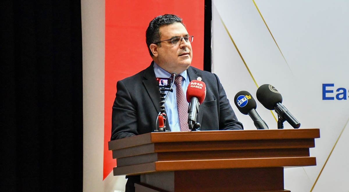 DAÜ ATAUM Başkanı Yrd. Doç. Dr. Göktürk, konuşmasında bu yılın, Kıbrıs’ın Osmanlı Devleti tarafından fethedilişinin 450. Yıl Dönümü olduğunu belirterek, DAÜ ATAUM koordinatörlüğünde tarihe yakışır bir faaliyet düzenlemek amacıyla özel bir organizasyon gerçekleştirdiklerini ifade etti. Yrd. Doç. Dr. Göktürk, sempozyumun diğer organizasyonlardan farkının, tarihi yapanlarla tarihi yazanları bir araya getirmesi olduğuna vurgu yaptı.