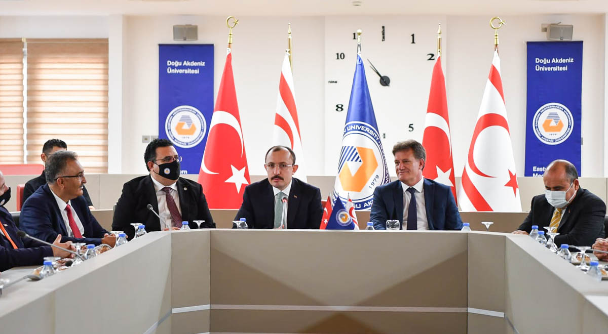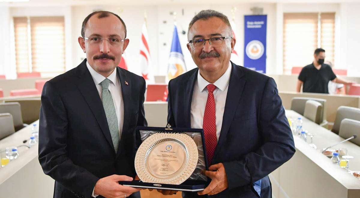 21 Nisan 2021’de Türkiye Cumhuriyeti Ticaret Bakanlığı görevine atanan Doğu Akdeniz Üniversitesi (DAÜ) İşletme ve Ekonomi Fakültesi, İşletme Bölümü Mezunu Dr. Mehmet Muş, Kuzey Kıbrıs Türk Cumhuriyeti’ne (KKTC) gelerek bir dizi temaslarda bulundu. Bakan Muş; programı kapsamında, 4 Haziran 2021 Cuma günü, saat 10:45’te DAÜ’yü de ziyaret etti. DAÜ Senato Salonu’nda gerçekleşen ziyarete, Türkiye Cumhuriyeti Ticaret Bakanı Dr. Mehmet Muş ile birlikte bazı milletvekilleri ve bakanlık yetkilileri, Kuzey Kıbrıs Türk Cumhuriyeti Başbakan Yardımcısı, Ekonomi ve Enerji Bakanı Prof. Dr. Erhan Arıklı, Türkiye Cumhuriyeti Lefkoşa Büyükelçisi Ali Murat Başçeri, DAÜ Vakıf Yöneticiler Kurulu Başkanı Dr. Erdal Özcenk DAÜ Rektörü Prof. Dr. Aykut Hocanın, Vakıf Yöneticiler Kurulu Üyeleri, Rektör Yardımcıları, İşletme ve Ekonomi Fakültesi Öğretim Üyeleri ve Bakan Dr. Muş’un dönem arkadaşları katıldı.