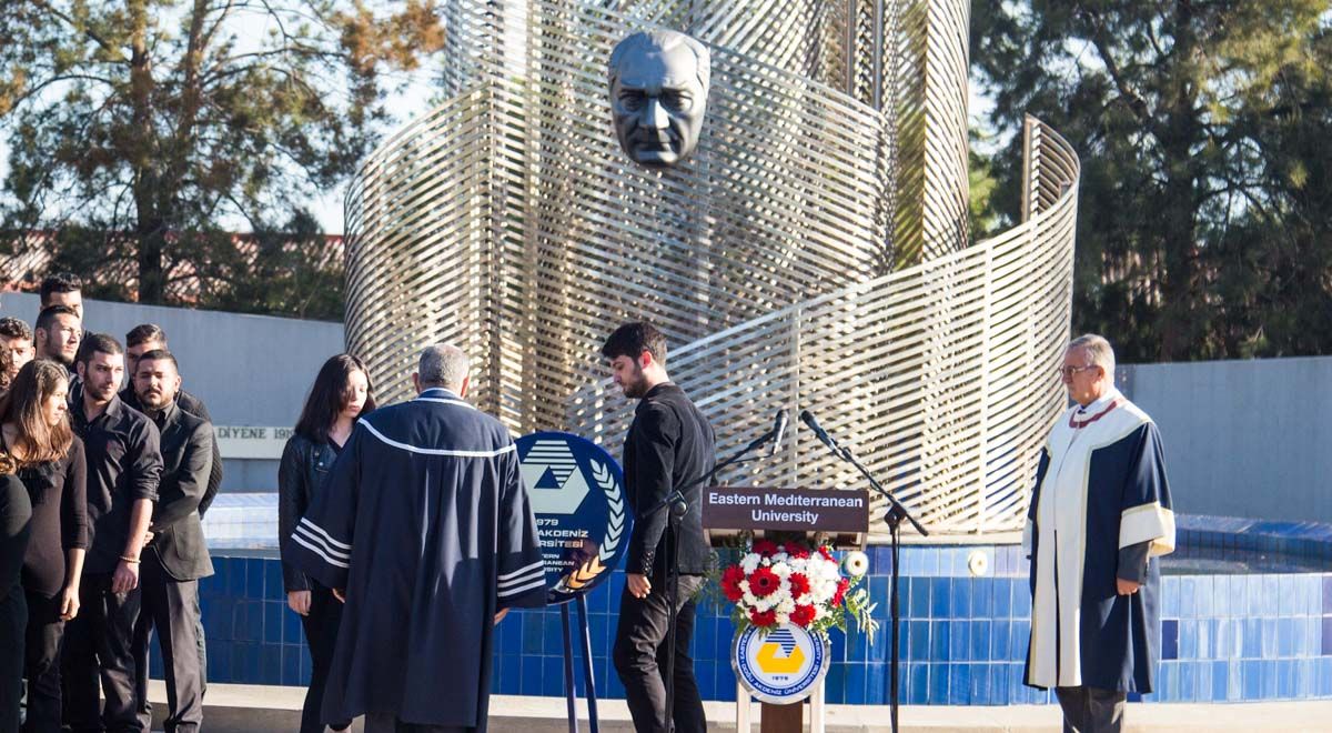 Ulu Önder Mustafa Kemal Atatürk, Doğu Akdeniz Üniversitesi’nde gerçekleştirilen törenlerle ölümünün 78. yılında saygı ile anıldı. DAÜ akademisyen, personel ve öğrencilerinin katılımı ile ilk tören 10 Kasım 2016 Perşembe günü, saat 08:45’te, DAÜ Atatürk Anıtı önünde başladı. Marşlar ve Atatürk’ün 10. Yıl Nutku’nun ardından Atatürk Araştırma ve Uygulama Merkezi (DAÜ – ATAUM) Başkanı Doç. Dr. Hasan Cicioğlu, Ulu Önder Mustafa Kemal Atatürk ile ilgili 10 Kasım Bildirisi’ni okudu.