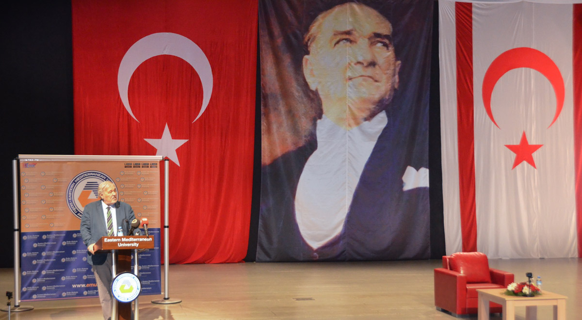 Doğu Akdeniz Üniversitesi (DAÜ) Atatürk Araştırma ve Uygulama Merkezi (ATAUM) tarafından düzenlenen ve ünlü tarih profesörü Prof. Dr. İlber Ortaylı’nın konuşmacı olarak yer aldığı “Cumhuriyet ve Atatürk” konulu konferans, 9 Nisan 2018 Pazartesi günü, saat 10:30’da, Rauf Raif Denktaş Kültür ve Kongre Sarayı’nda gerçekleştirildi.