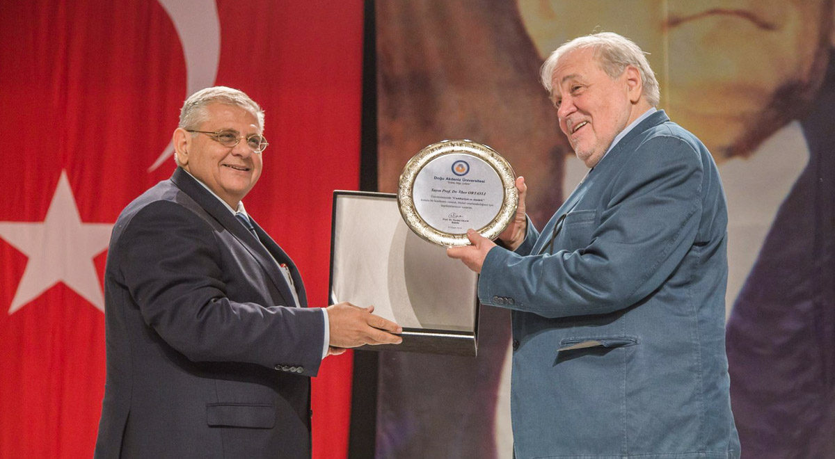 Öğrencilerden gelen soruların cevaplandırılmasının ardından DAÜ Rektörü Prof. Dr. Necdet Osam, Prof. Dr. Ortaylı’ya teşekkür plaketi takdim etti. Söz konusu etkinliğe Gazimağusa Kaymakamı Dürdane Acı, Mağusa Deniz Komutanı Alb. N. Koray Salar, Rektör Yardımcıları Prof. Dr. Hüseyin Özkaramanlı ve Prof. Dr. Cem Tanova, Eğitim Fakültesi Dekanı Prof. Dr. Ülker Vancı Osam’ın yanı sıra çok sayıda öğretim üyesi, yönetsel personel ve öğrenciler katıldı.