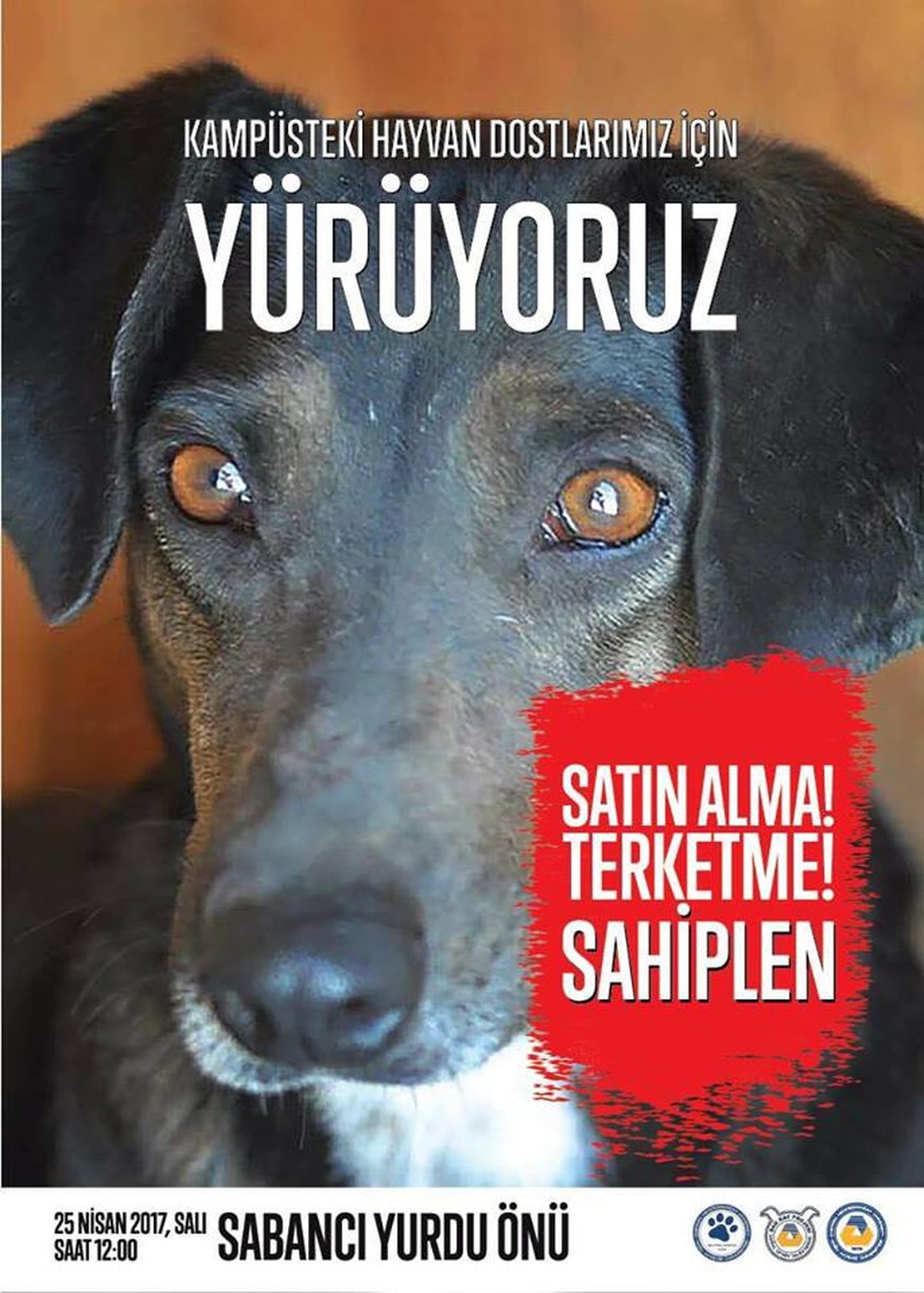 Doğu Akdeniz Üniversitesi (DAÜ) hayvan dostu kampüs konusunda bir adım daha atıyor. DAÜ Hayvanlara Yardım Kulübü ve Kısırlaştır Aşılat Yaşat (DAÜ-KAY) projesi gönüllüleri "Satın alma sahiplen, terketme sahiplen" temalı bir farkındalık yürüyüşü düzenliyor. Yürüyüş 25 Nisan 2017 Salı günü, DAÜ Sabancı Yurdu'nun önünden başlayacak.